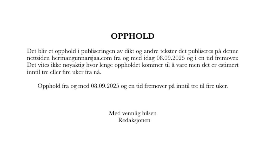 Publiser september 8, 2025september 7, 2025 av nettstedet hermangunnarsjaa.com opphold (C) hermangunnarsjaa.com og Herman Gunnarsjaa