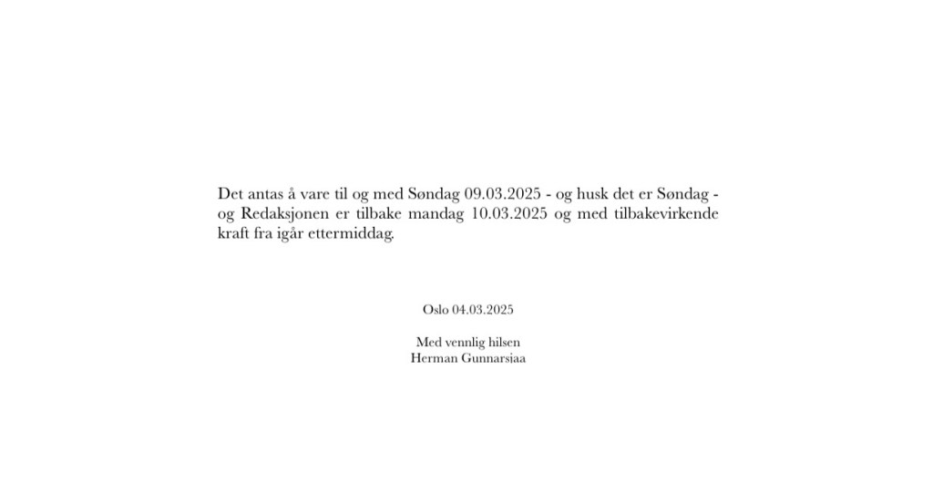 Publiser januar 13, 2025 av nettstedet hermangunnarsjaa.com det ble langhelg (C) hermangunnarsjaa.com og Herman Gunnarsjaa