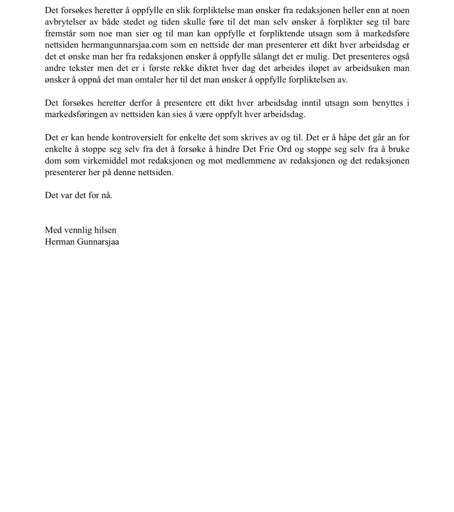 Alle dikt og alt innhold på disse sidene er rettighetsbelagt etter norsk lov om Åndsverk (Copyright Herman Gunnarsjaa). Kontakt med nettstedet leve.live og spørsmål om informasjon pr epost for sponsorer og forlagsspørsmål: redaksjonen@hermangunnarsjaa.com